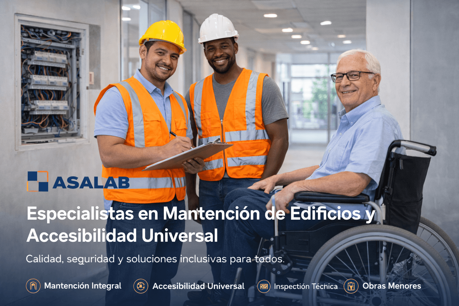 ASALAB es una empresa especializada en mantención integral de edificios y accesibilidad universal, orientada a mejorar la seguridad, funcionalidad y calidad de los espacios construidos, cumpliendo con la normativa vigente y las buenas prácticas técnicas.